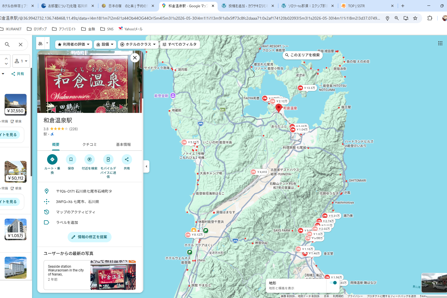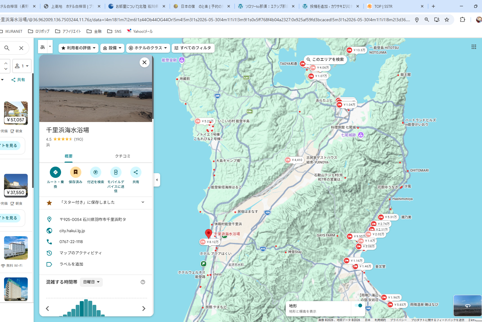 せっかくはるばる能登まで行くなら、良いホテルか旅館に泊まりたい。そうすればモチベーションが上がるしそこまで行く目的が一つ追加される。